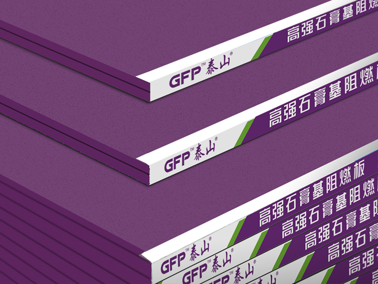 GFP®Taishan®High-strength gypsum-based Flame Retardant Board is a new type of gypsum-based high-performance fiberboard developed by the company. Through the unique gel-based hard board technology, high-strength Tissue Paper, high-strength Gypsum and Gao Qiang fiber reinforced material are perfectly integrated, and the product has high compactness, the utility model has the advantages of high strength, strong nail holding force, good fire resistance and stability, remarkable sound insulation effect, anti-deformation and anti-impact, etc.